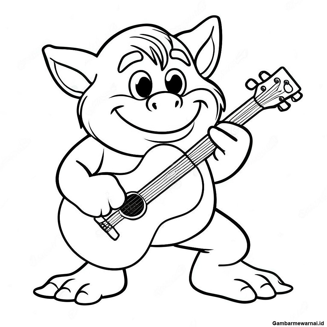 Halaman Mewarnai Floyd Si Troll Bermain Gitar