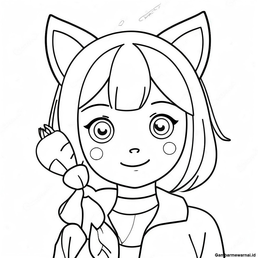 Halaman Mewarnai Gadis Anime Dengan Telinga Kucing