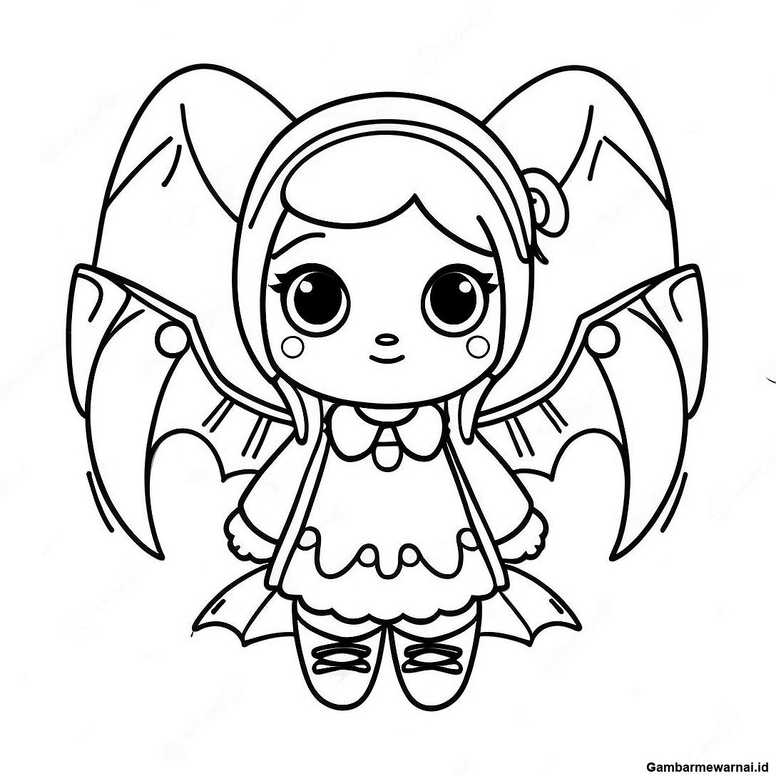 Unduh PDF yang Dapat Dicetak dari Halaman Mewarnai Gadis Goth Pastel Dengan Sayap Kelelawar