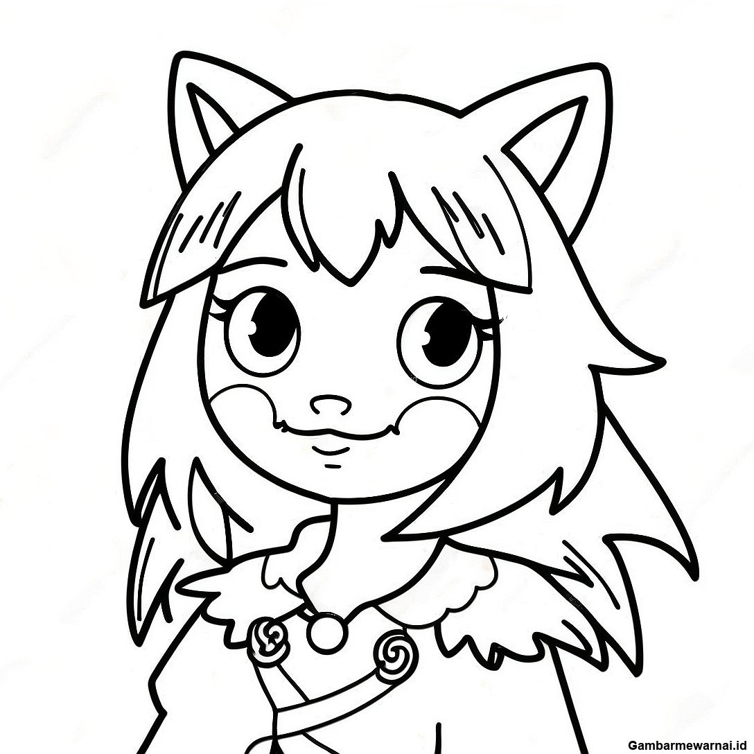 Halaman Mewarnai Gadis Serigala Misterius Anime