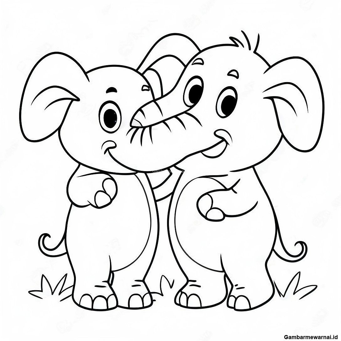 Halaman Mewarnai Gajah Dan Piggie Yang Lucu