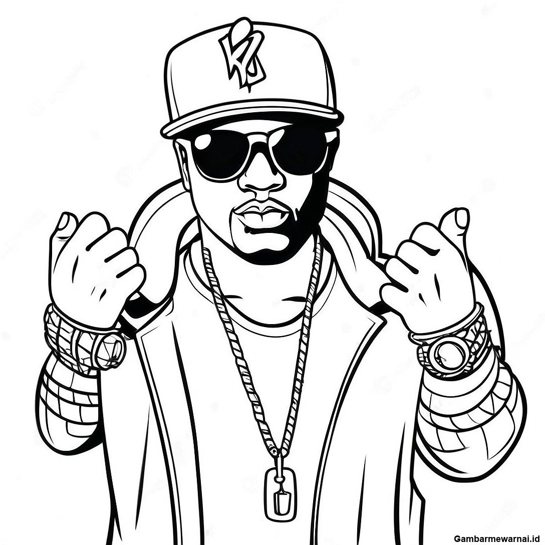 Halaman Mewarnai Gangster Hip Hop Keren Dengan Topi