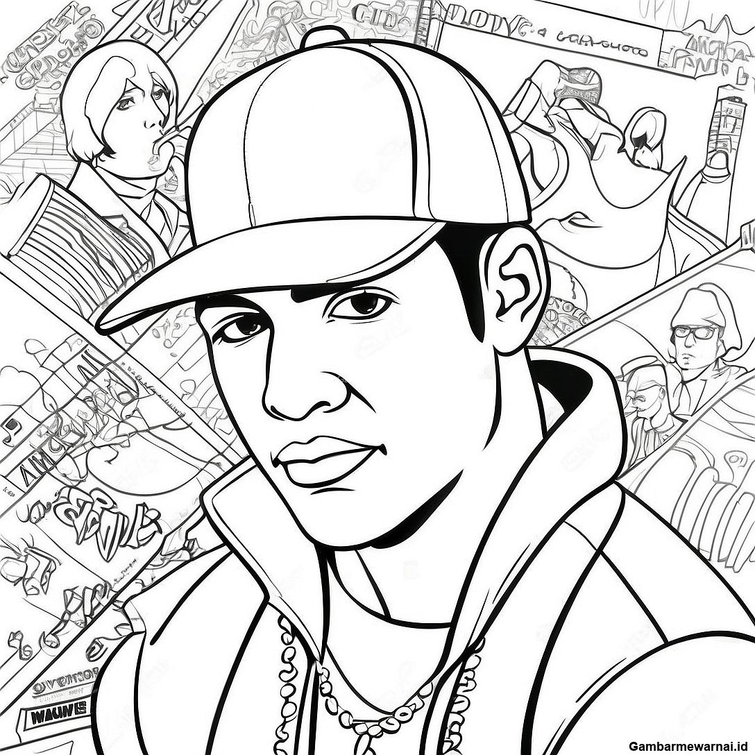 Halaman Mewarnai Gangster Hip Hop Keren Dengan Topi