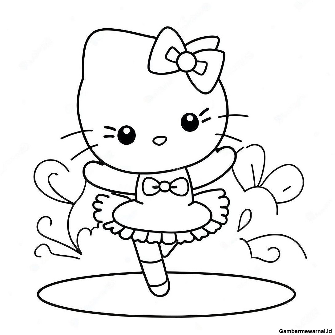 Halaman Mewarnai Garis Ballerina Hello Kitty