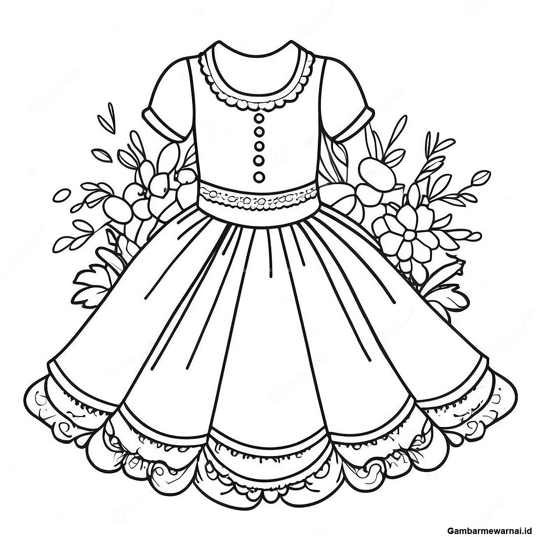 Halaman Mewarnai Gaun Komuni Pertama Yang Elegan