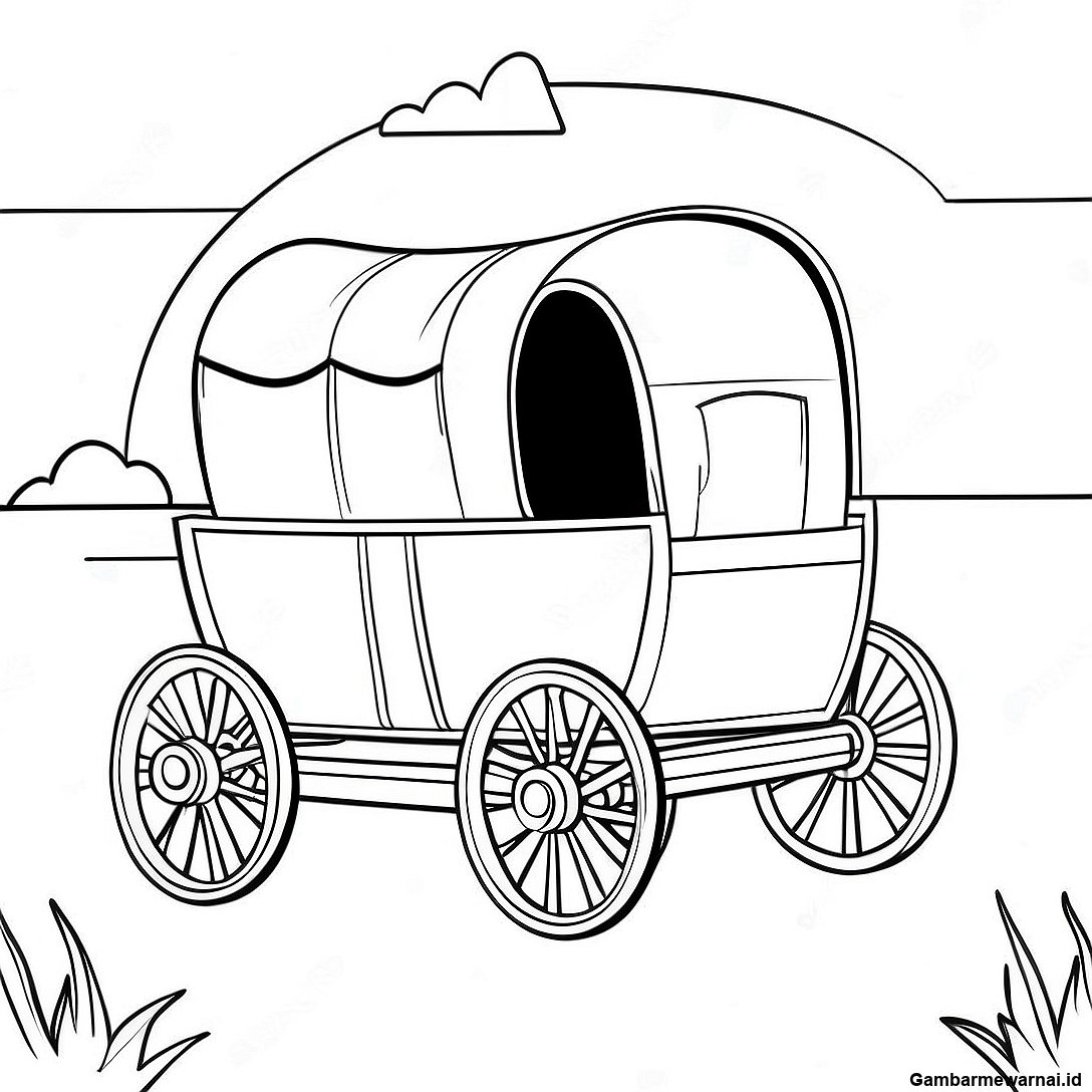 Halaman Mewarnai Gerobak Tertutup Di Jalur Oregon
