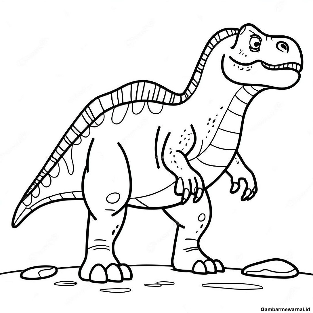 Halaman Mewarnai T Rex Bahagia Bermain dengan Teman
