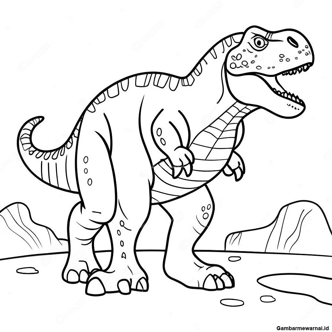 Halaman Mewarnai T Rex Marah Mengejar Mangsa