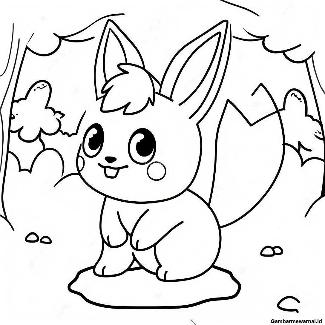 Gambar Mewarnai Eevee Bermain di Rumput