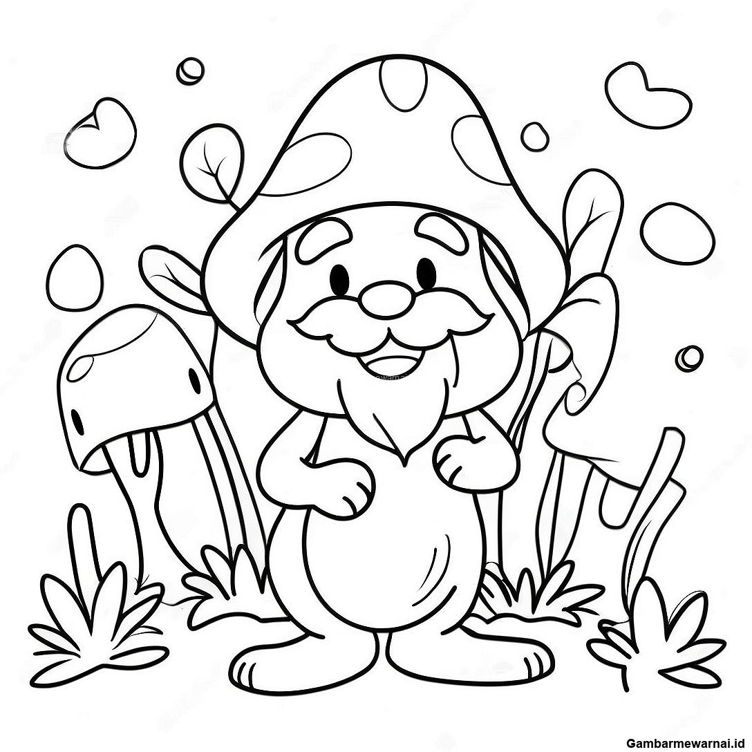 Halaman Mewarnai Gnome Jamur Bahagia Bermain Dengan Hewan 122094 56645