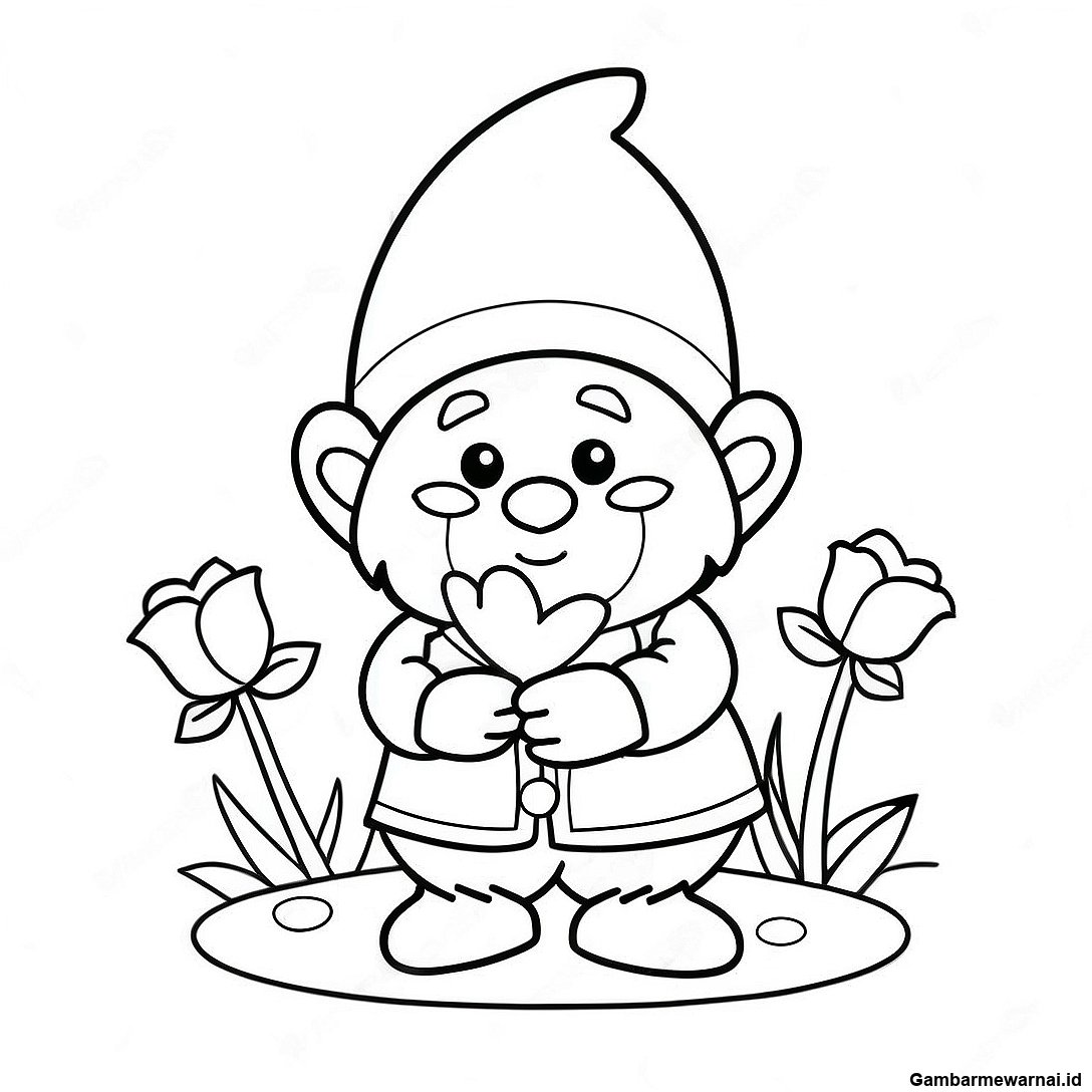 Halaman Mewarnai Gnome Valentine Bahagia Memegang Bunga