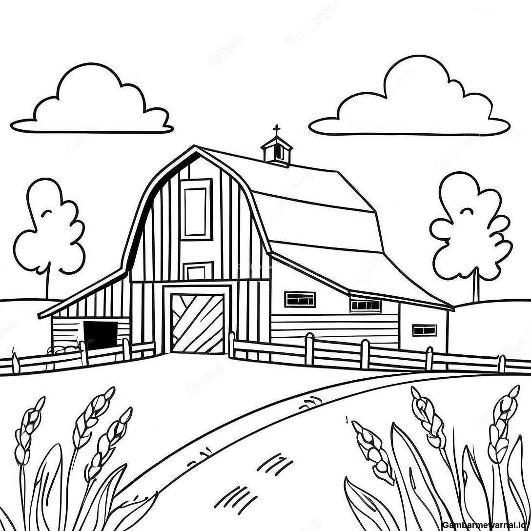Halaman Mewarnai Gudang Dan Ladang Yang Berwarna