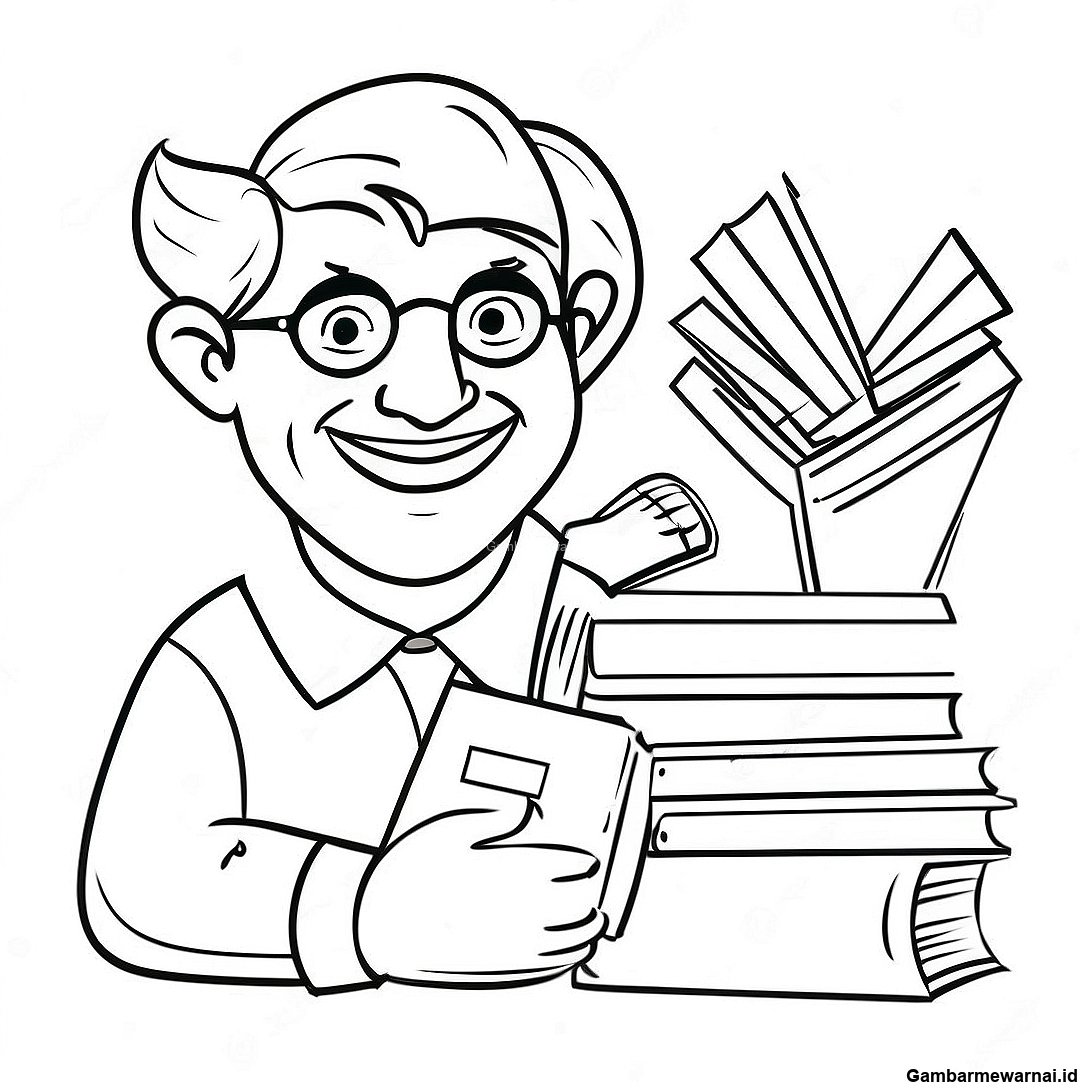 Halaman Mewarnai Guru Inspiratif Dengan Buku