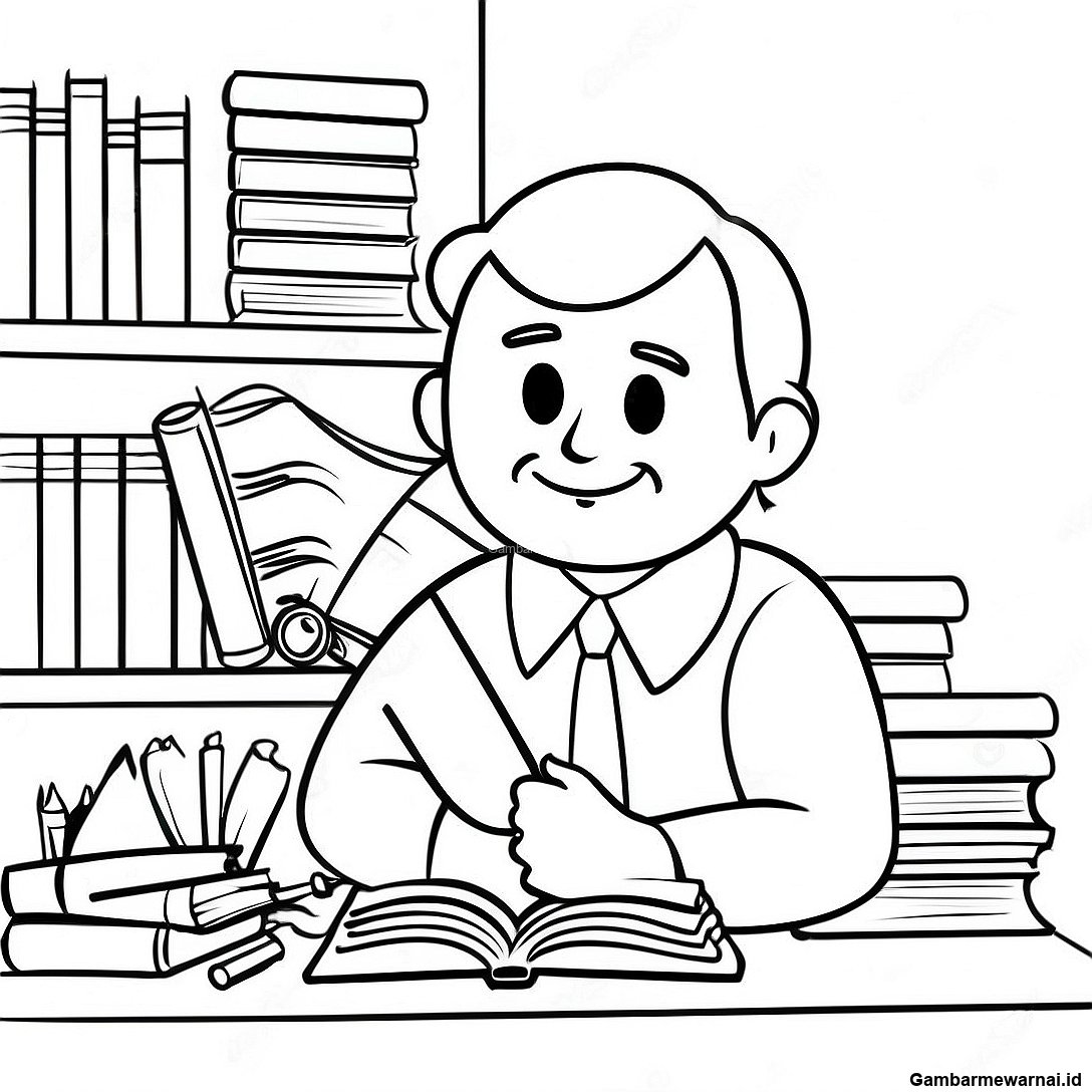 Halaman Mewarnai Guru Inspiratif Dengan Buku
