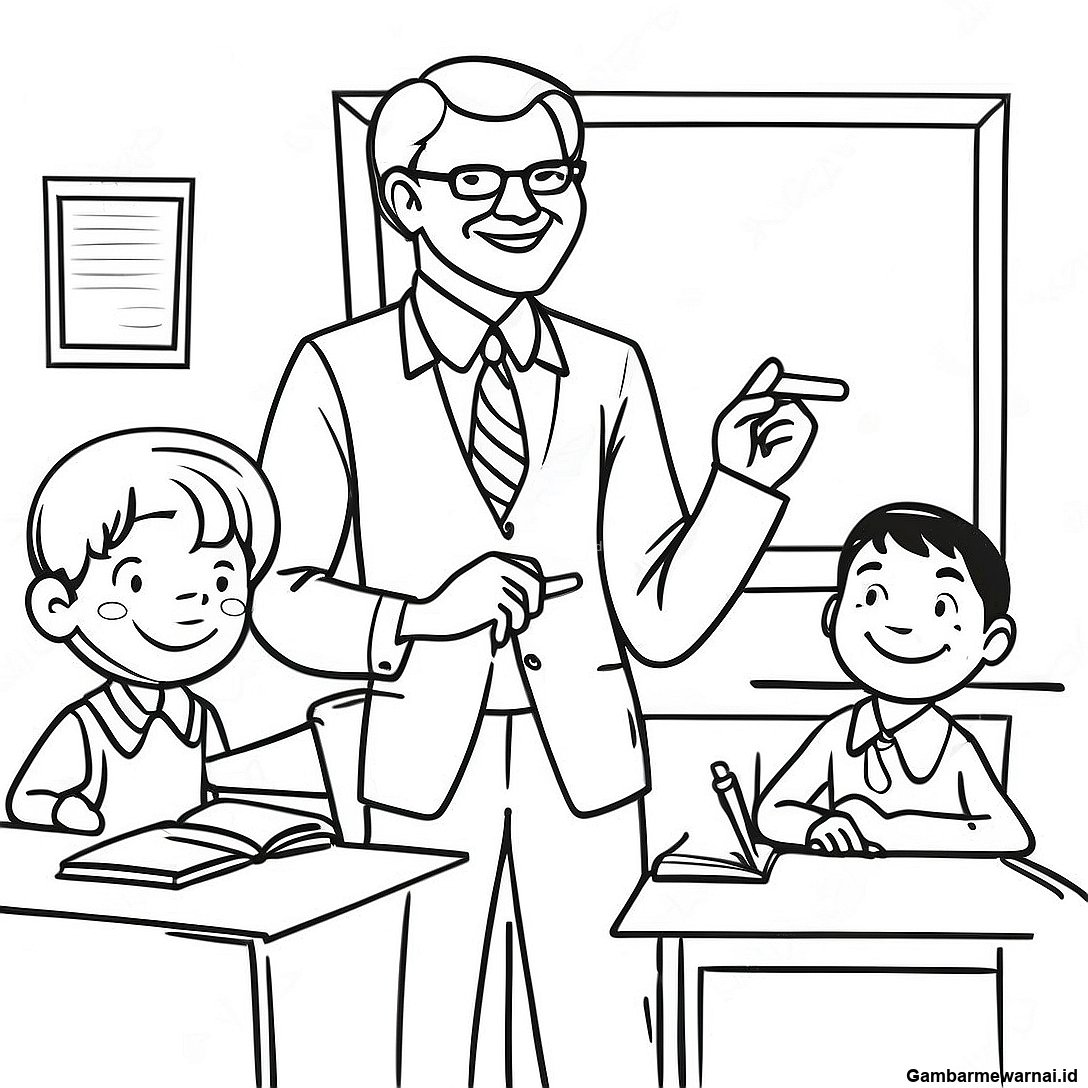 Halaman Mewarnai Guru Ramah Dengan Siswa