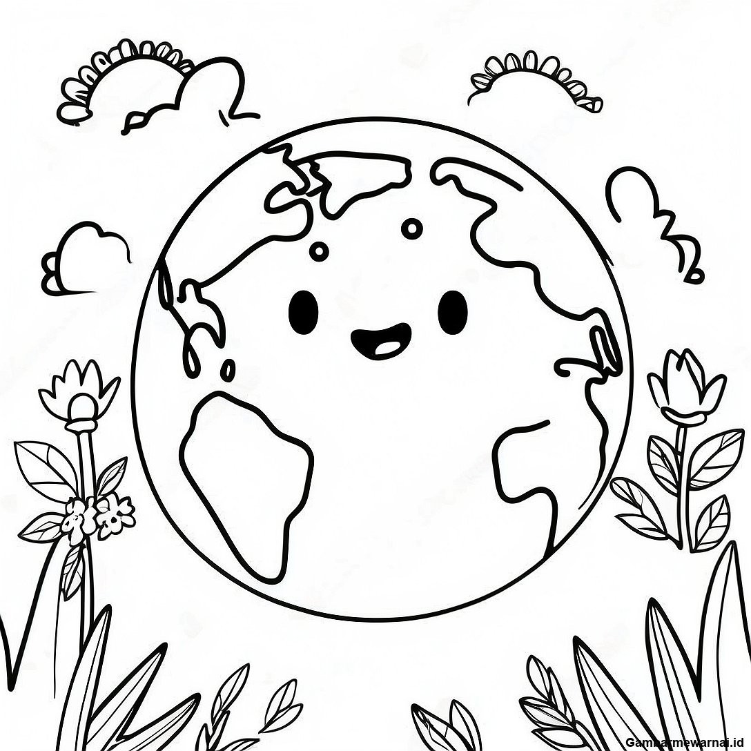 Halaman Mewarnai Hari Bumi Yang Bahagia