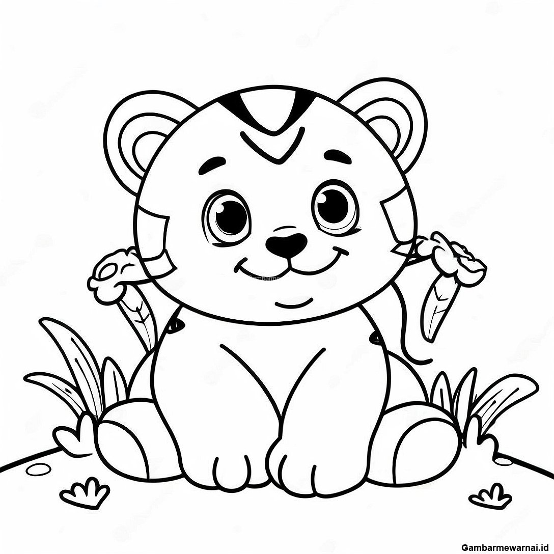 Halaman Mewarnai Harimau Bayi Yang Lucu Sedang Bermain