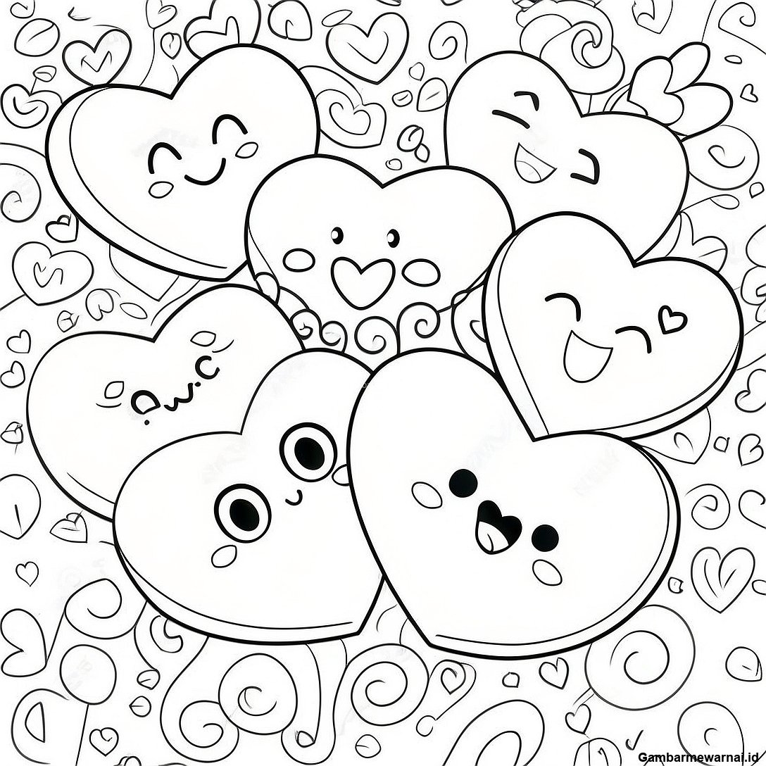 Halaman Mewarnai Hati Percakapan Yang Imut