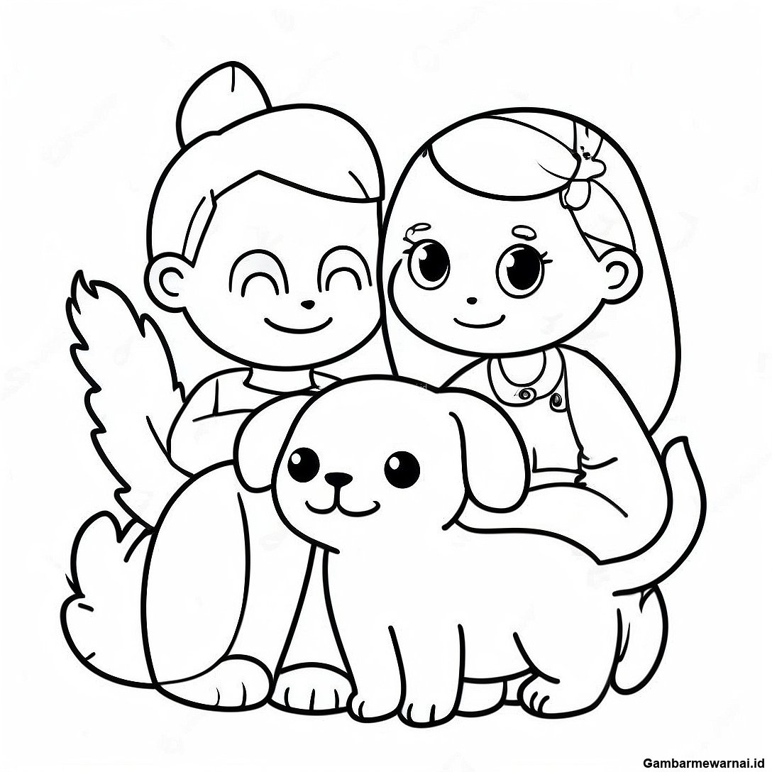 Halaman Mewarnai Hewan Peliharaan Yang Menggemaskan Dengan Pemiliknya