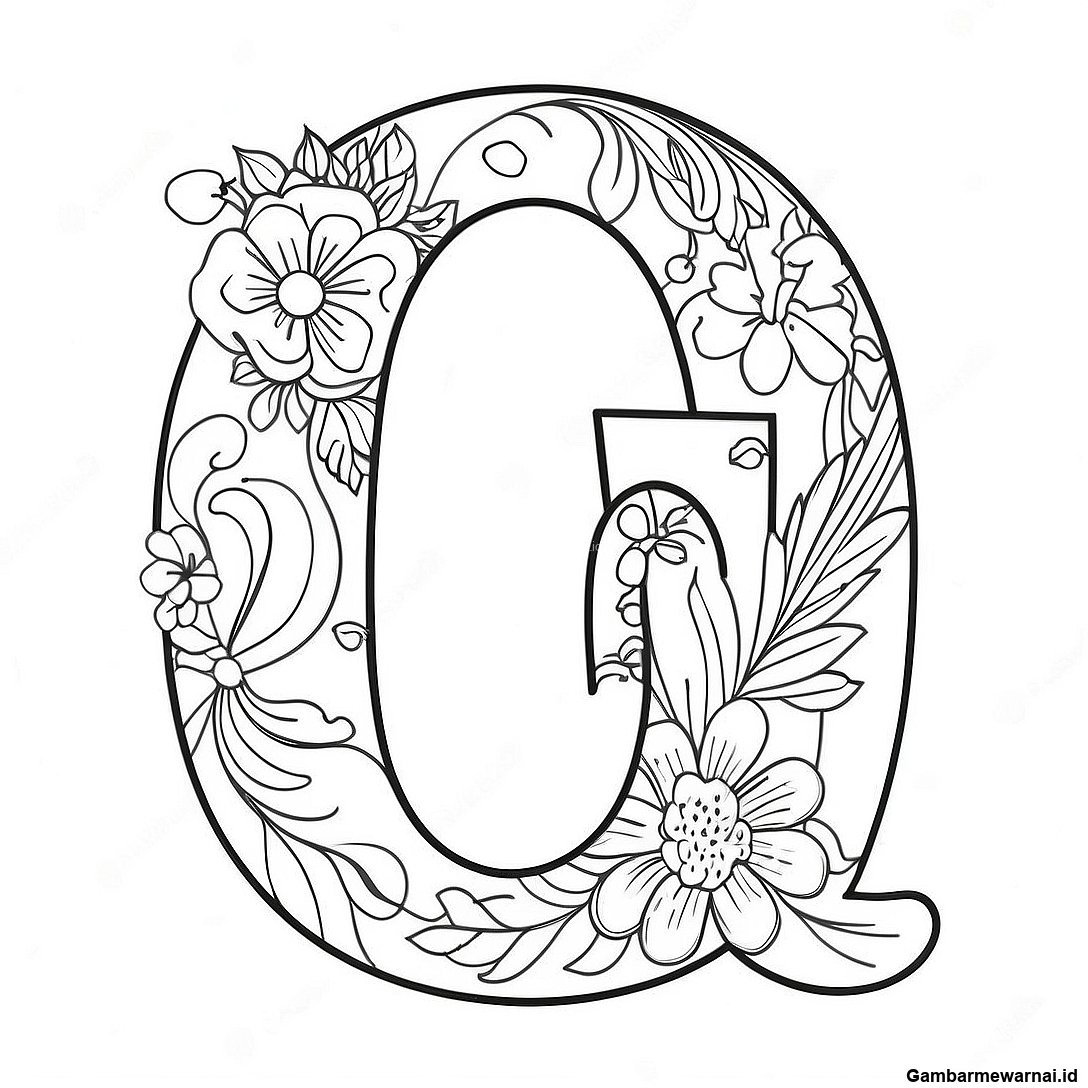 Halaman Mewarnai Huruf Q Berwarna Warni Dengan Bunga 128017 61520