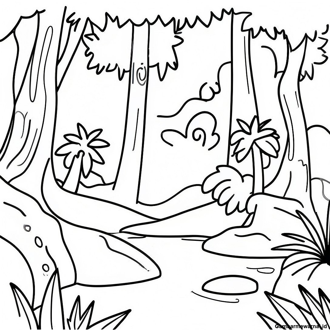 Halaman Mewarnai Hutan Hujan Tropis Yang Subur