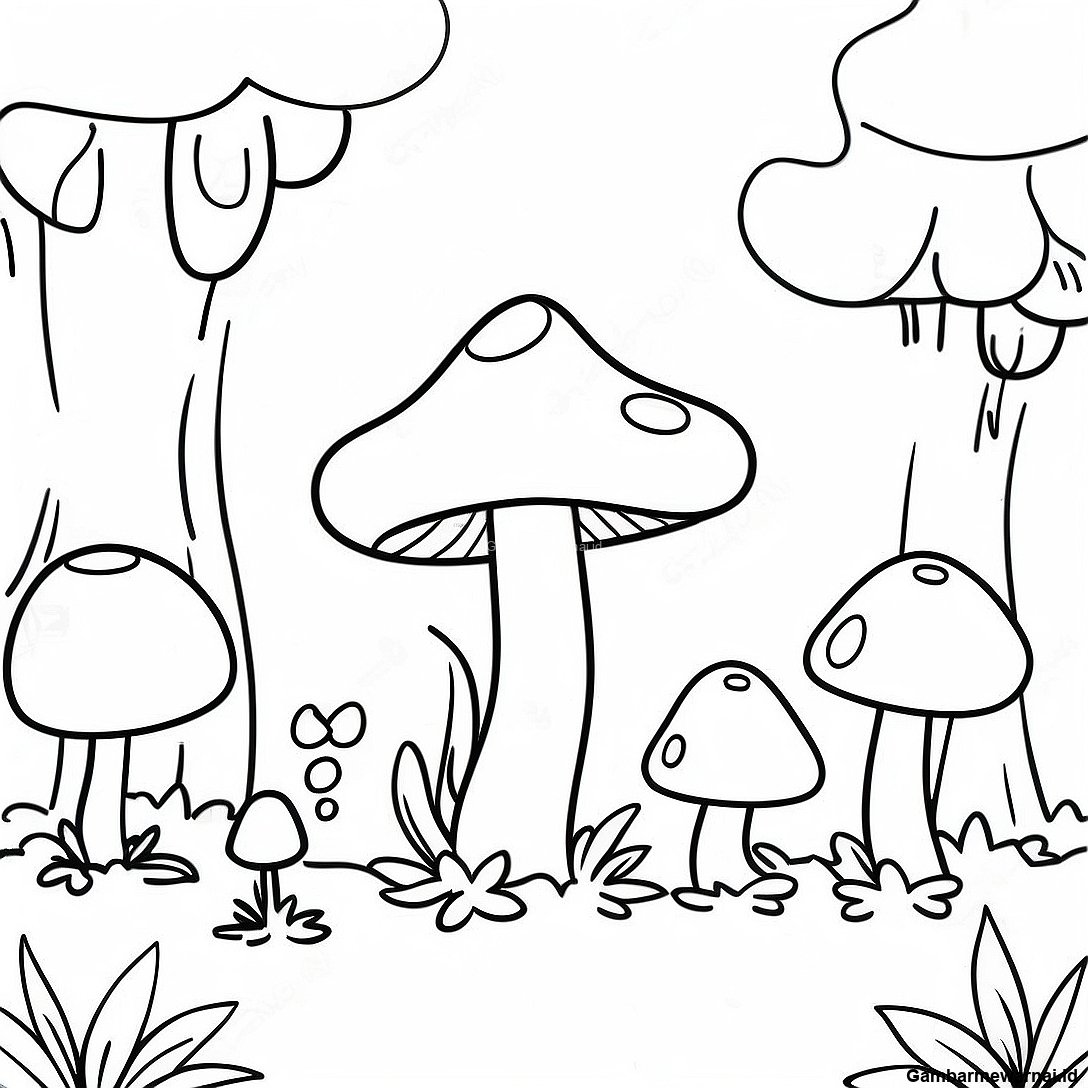 Halaman Mewarnai Hutan Jamur Yang Fantastis