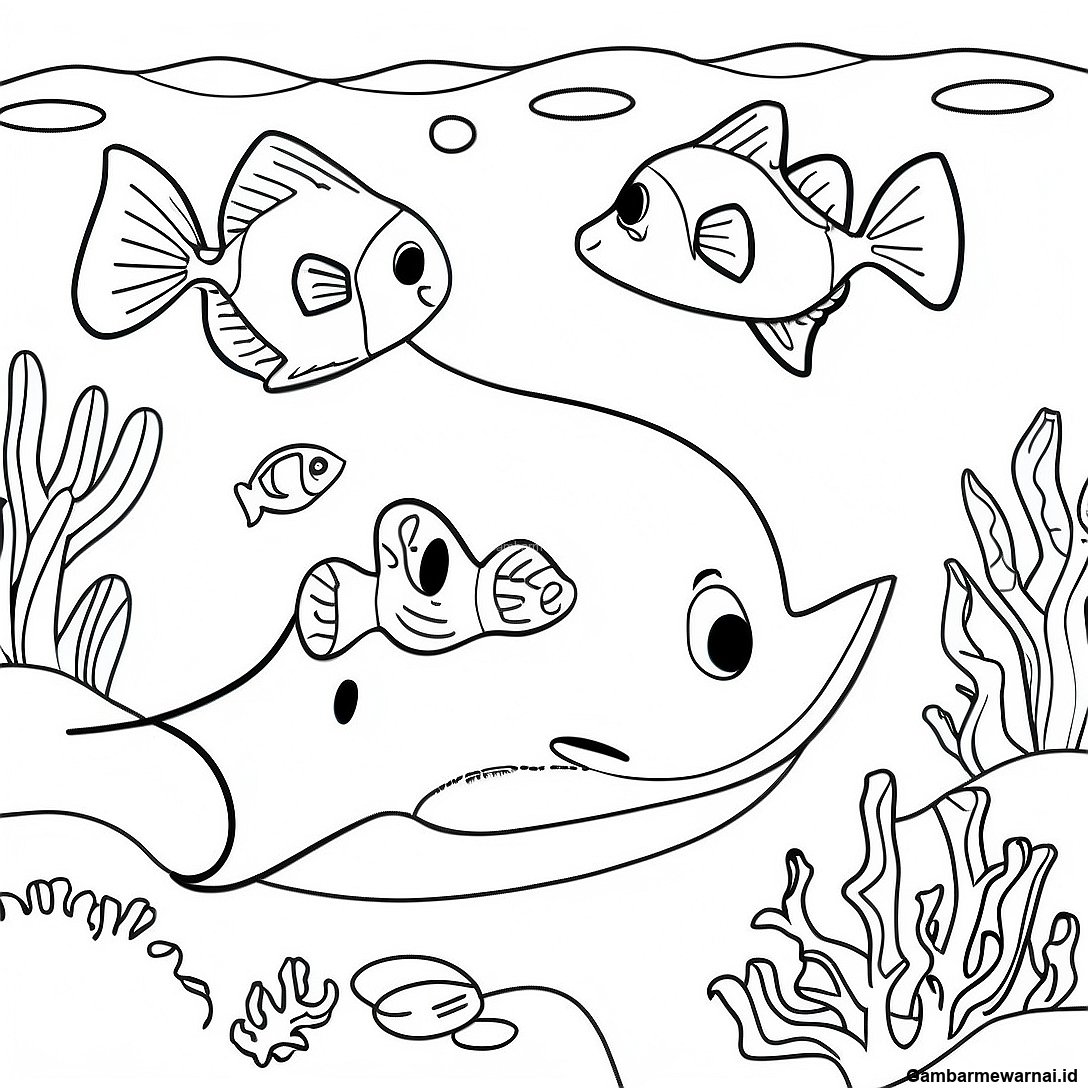 Halaman Mewarnai Ikan Pari Realistis Dengan Terumbu Karang