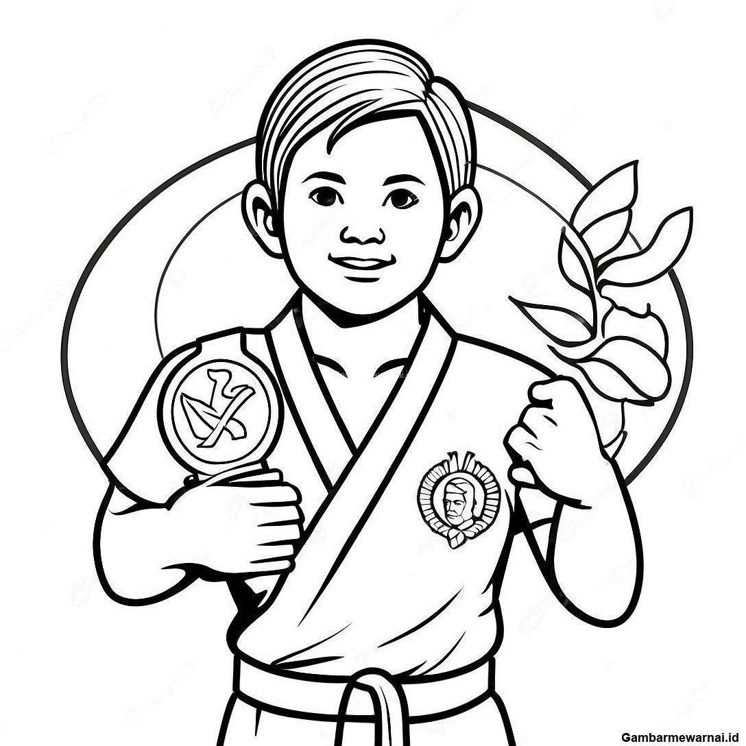 Unduh PDF yang Dapat Dicetak dari Halaman Mewarnai Juara Karate Dengan Piala