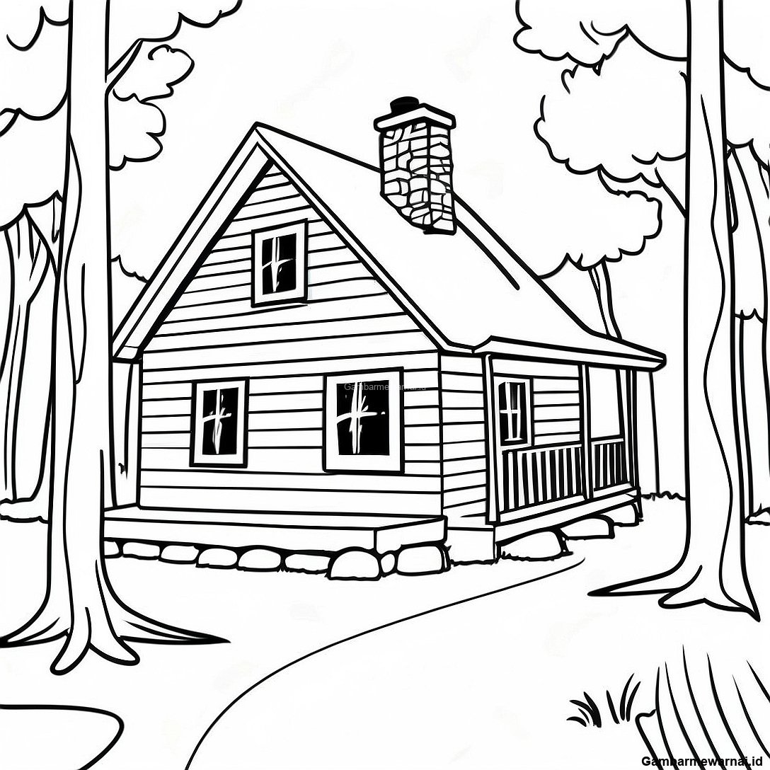 Halaman Mewarnai Kabin Kayu Yang Nyaman Di Hutan 122734 57195