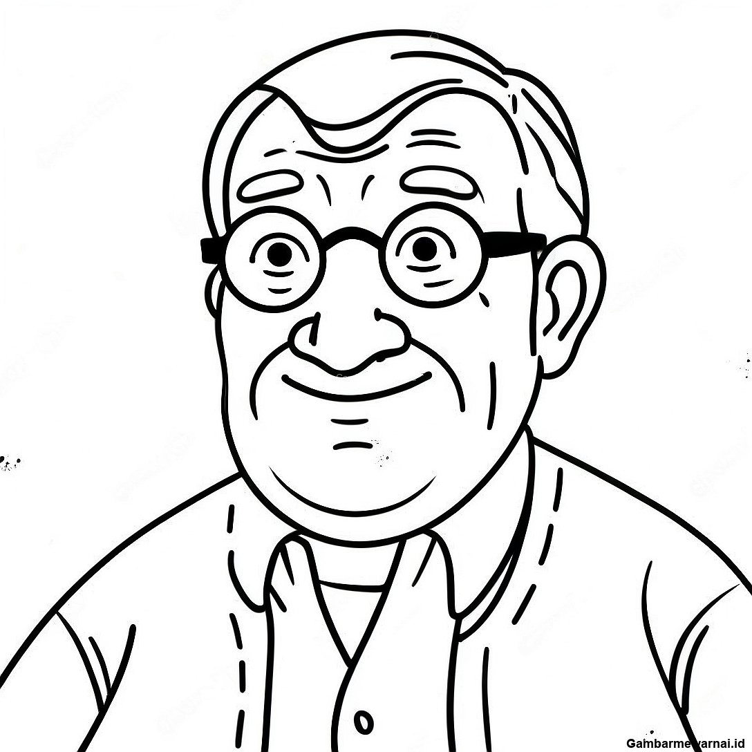 Halaman Mewarnai Kakek Dalam Pose Komikal
