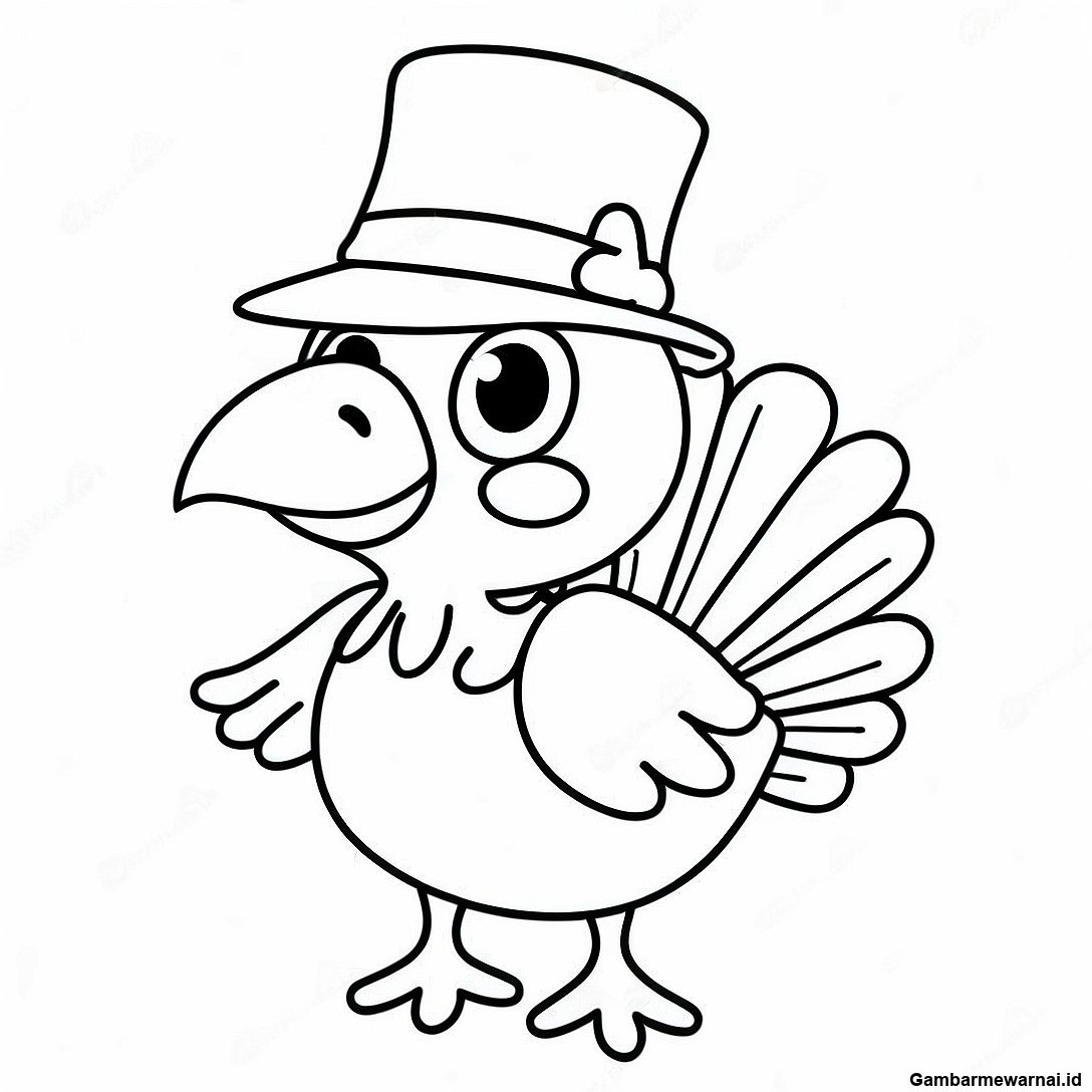 Halaman Mewarnai Kalkun Menggemaskan Dengan Topi