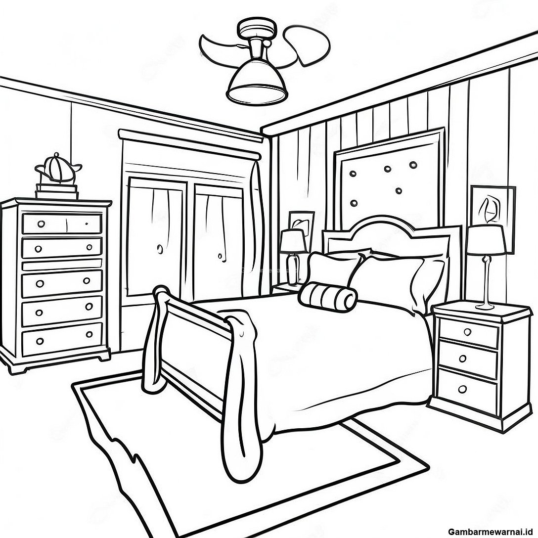 Unduh PDF yang Dapat Dicetak dari Halaman Mewarnai Kamar Tidur