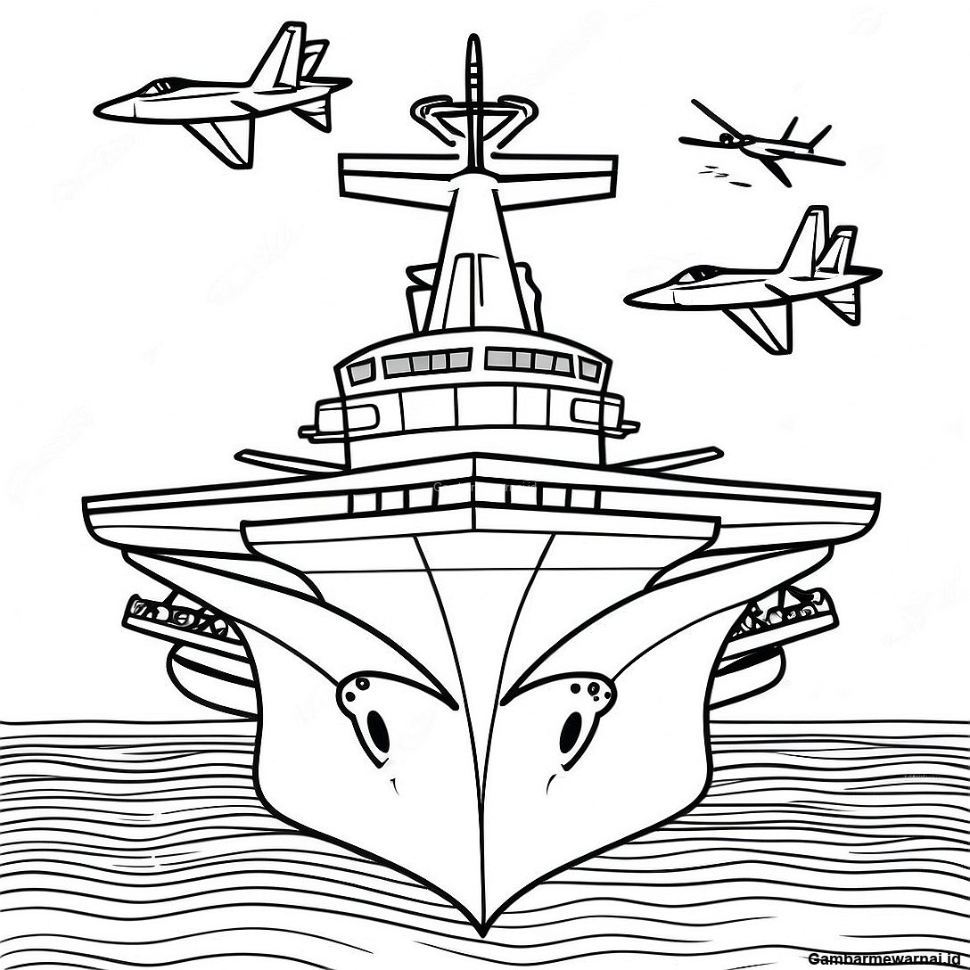 Halaman Mewarnai Kapal Induk Dengan Jet 127195 60760