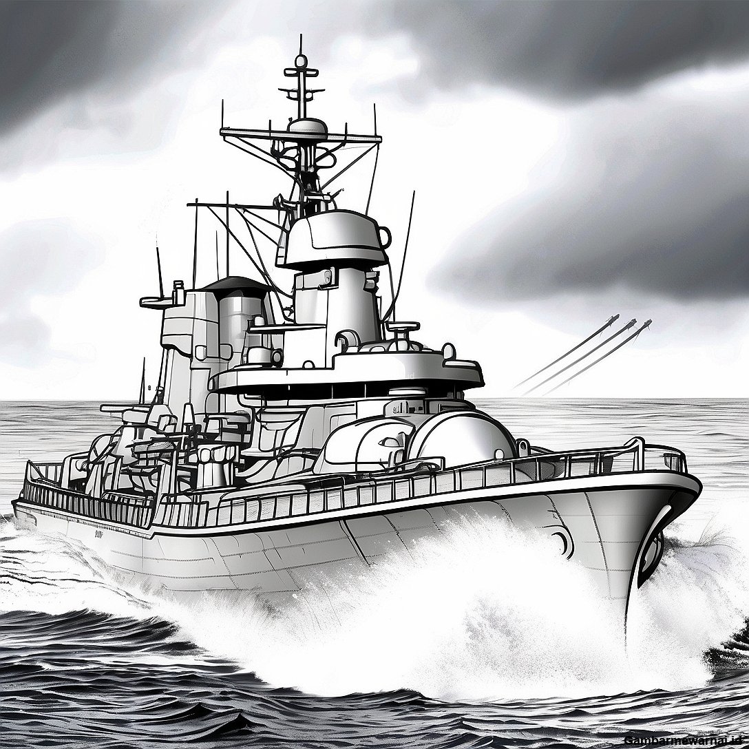 Halaman Mewarnai Kapal Perang Di Perairan Bergelora 85623 26535
