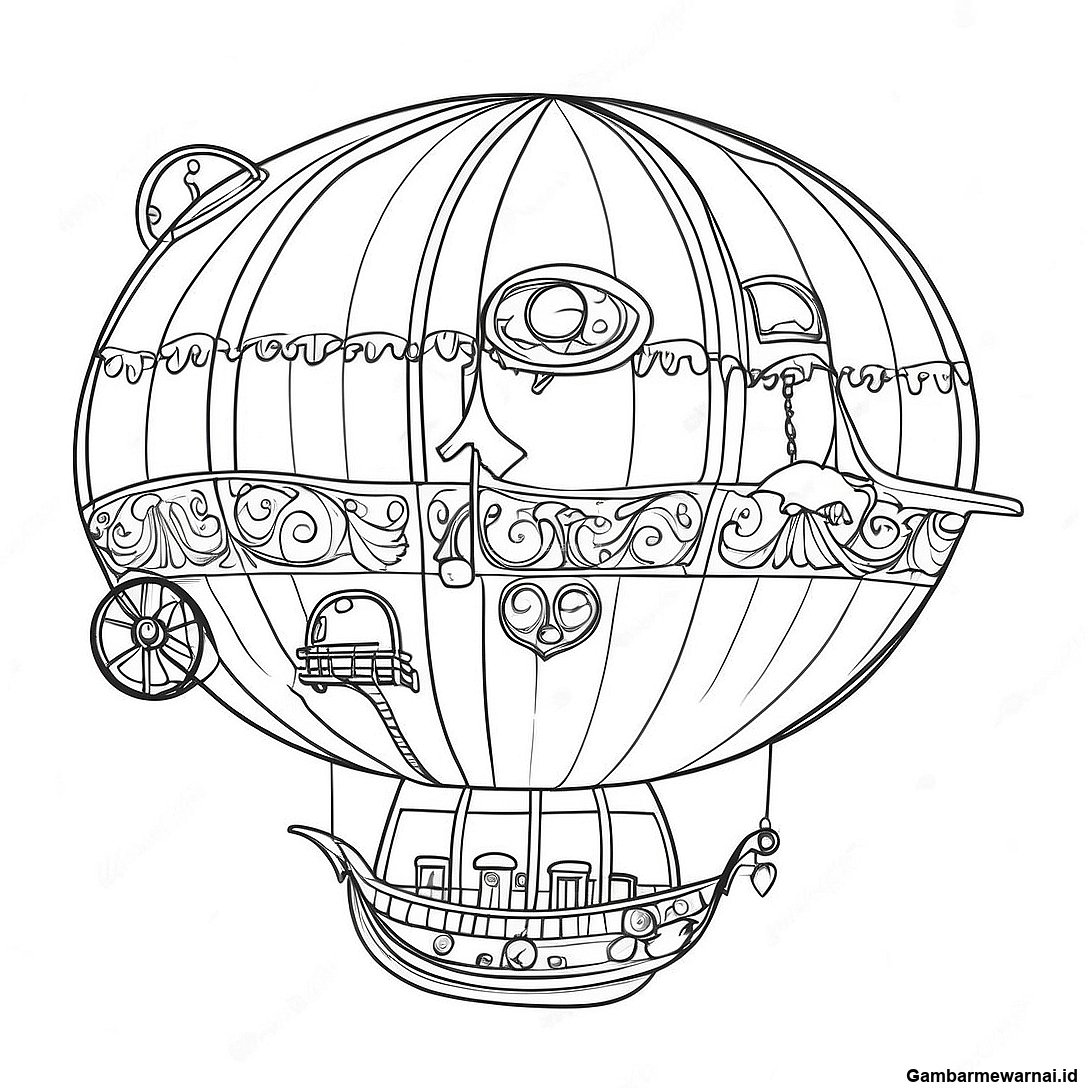 Halaman Mewarnai Kapal Udara Steampunk Yang Fantastis