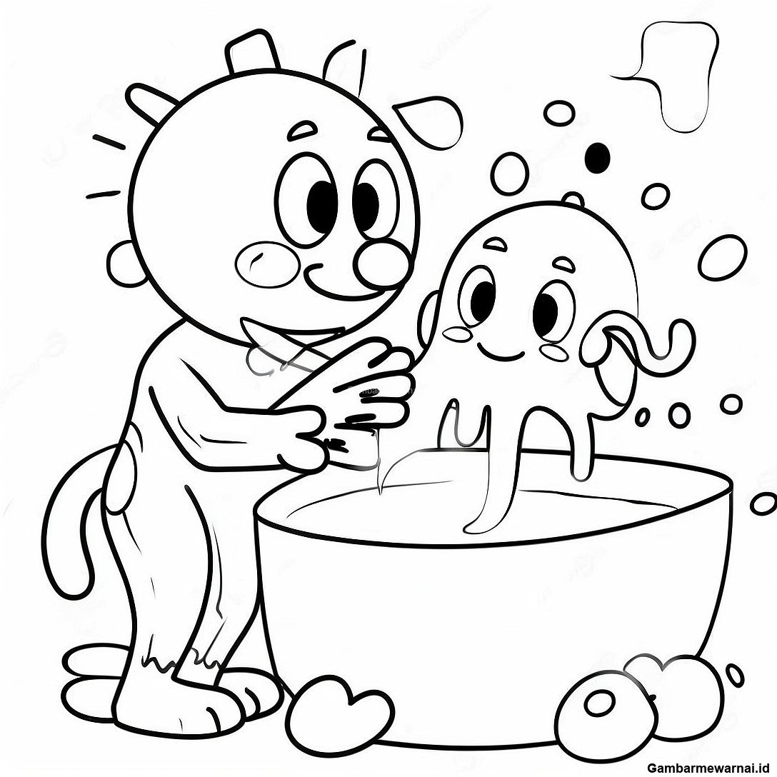 Halaman Mewarnai Karakter Ceria Mencuci Tangan