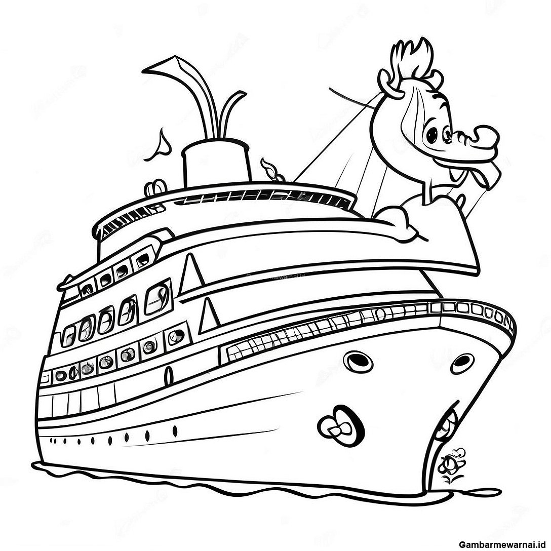 Halaman Mewarnai Karakter Kapal Pesiar Disney Yang Berwarna-Warni