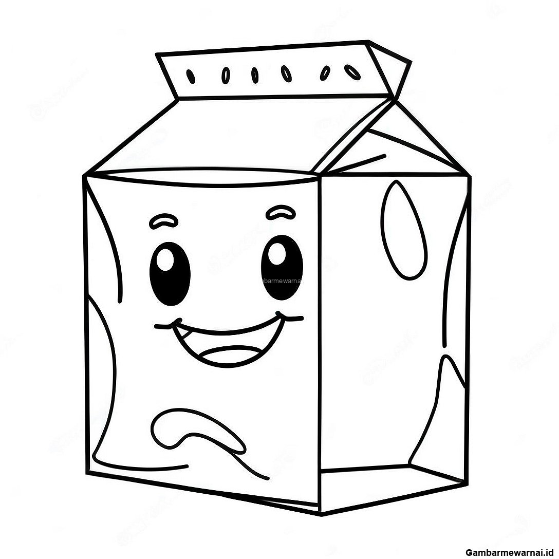 Halaman Mewarnai Karton Susu Tersenyum Dengan Gelas