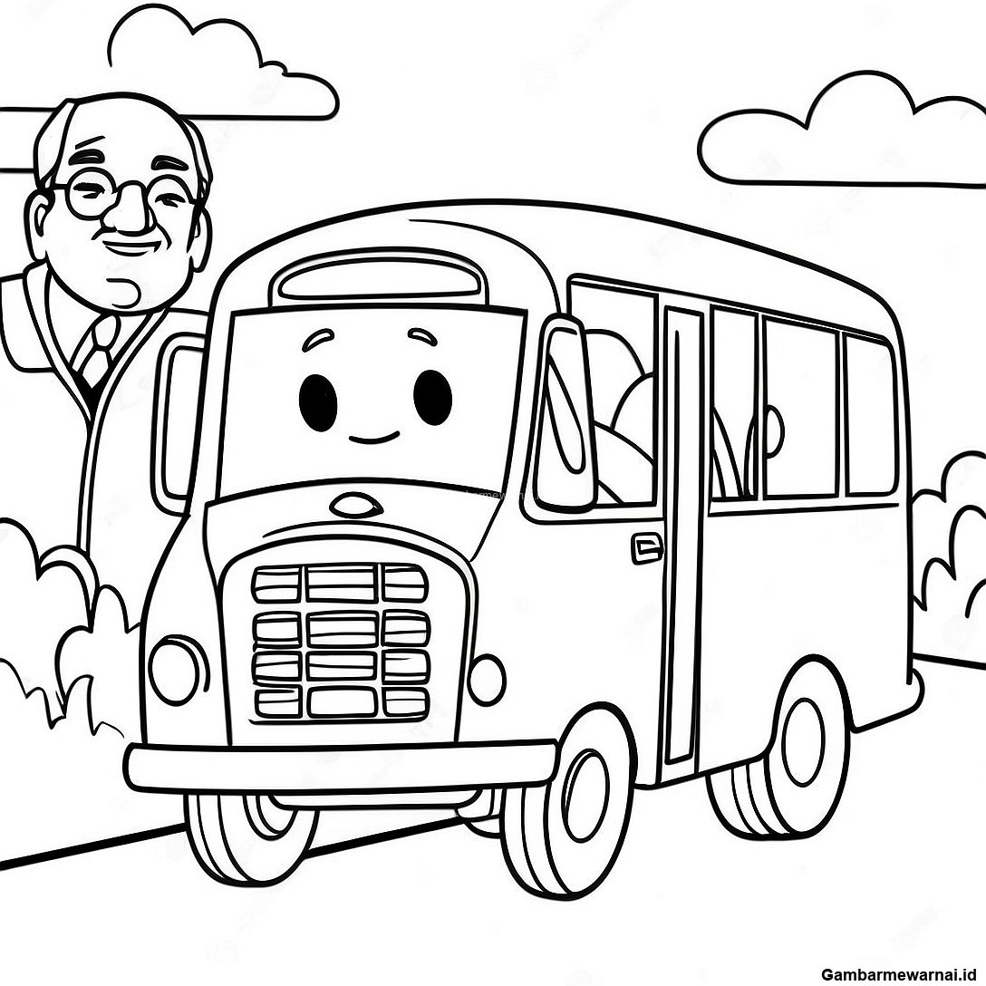 Halaman Mewarnai Kartu Terima Kasih Supir Bus Yang Ramah