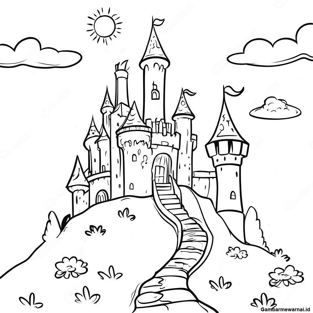 Halaman Mewarnai Kastil Ajaib Di Atas Bukit 97753 36748