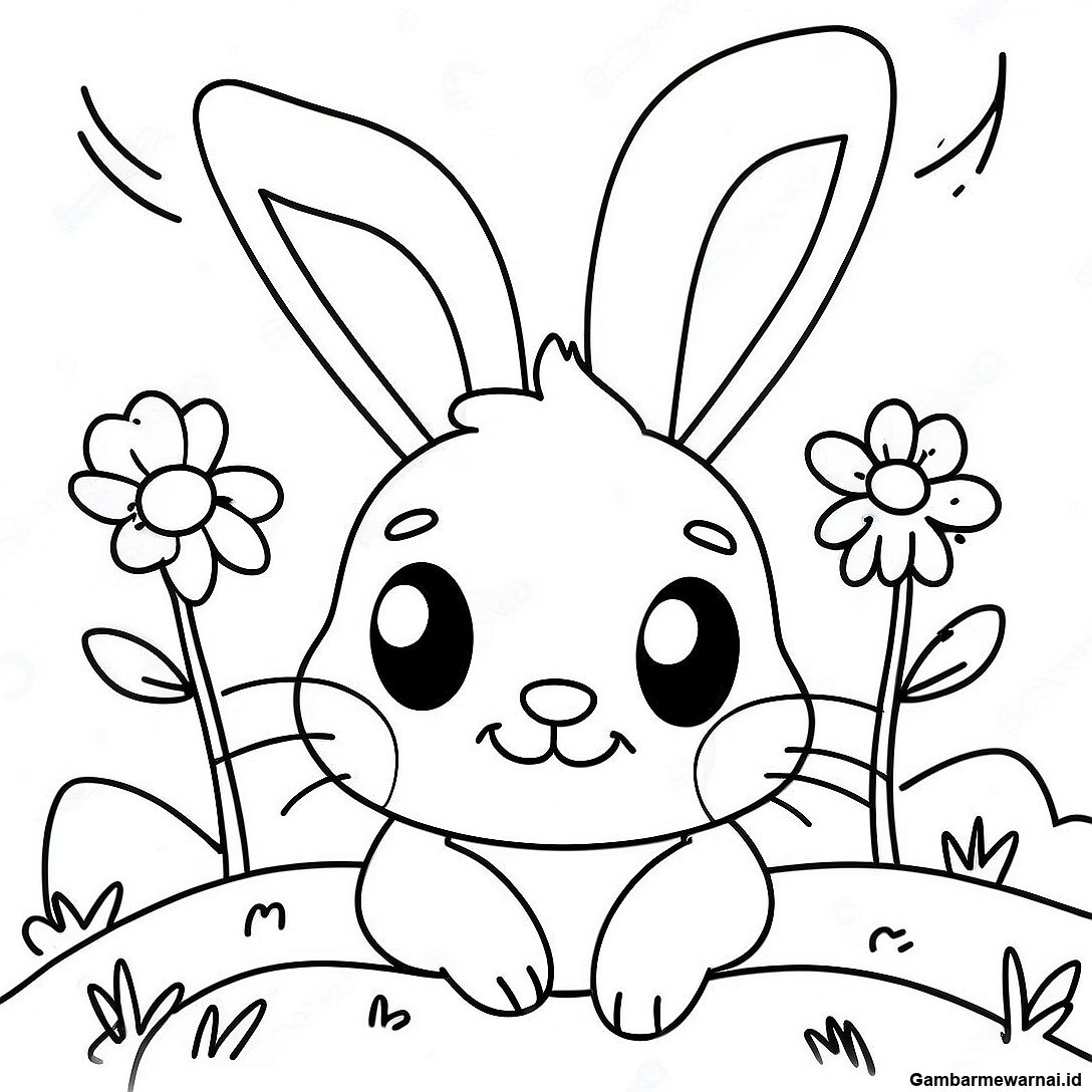 Halaman Mewarnai Kelinci Cerah Yang Bermain Dengan Bunga 108748 45617