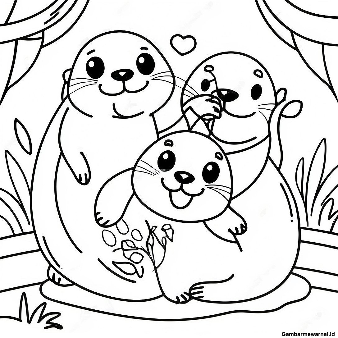 Halaman Mewarnai Keluarga Berang Berang Bahagia