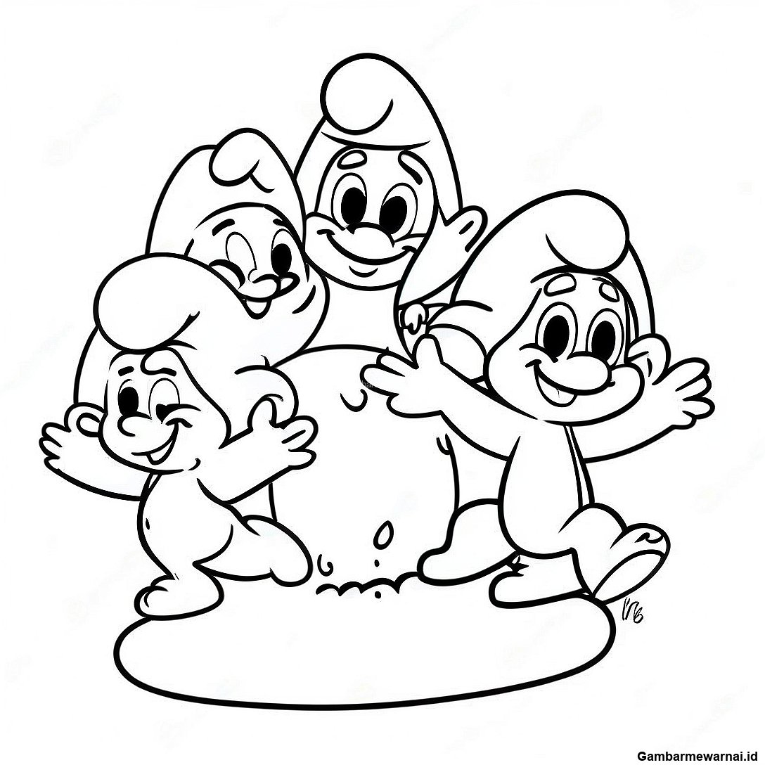 Halaman Mewarnai Keluarga Smurf Yang Bahagia