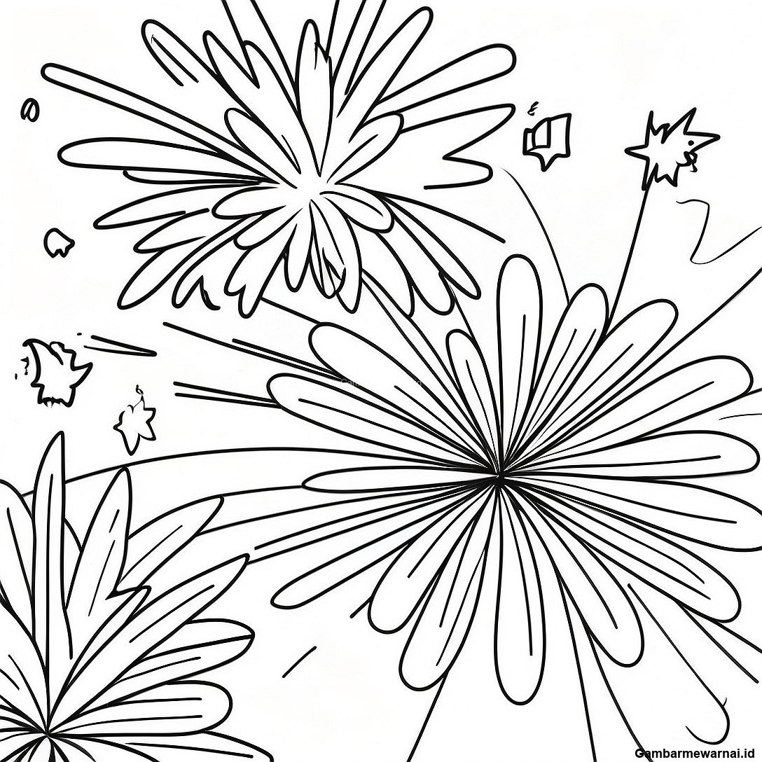Halaman Mewarnai Kembang Api Berkilau Di Langit Malam