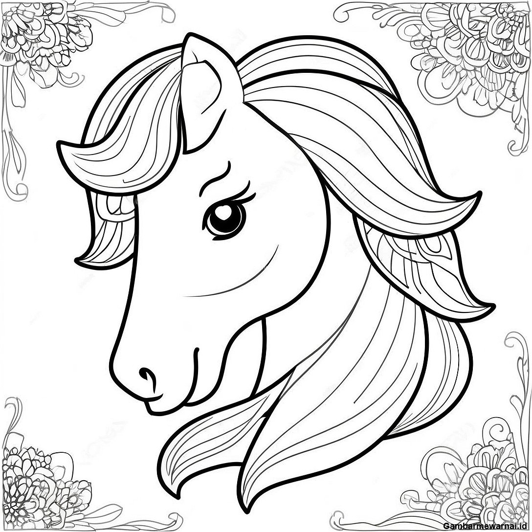 Unduh PDF yang Dapat Dicetak dari Halaman Mewarnai Kepala Kuda Elegan