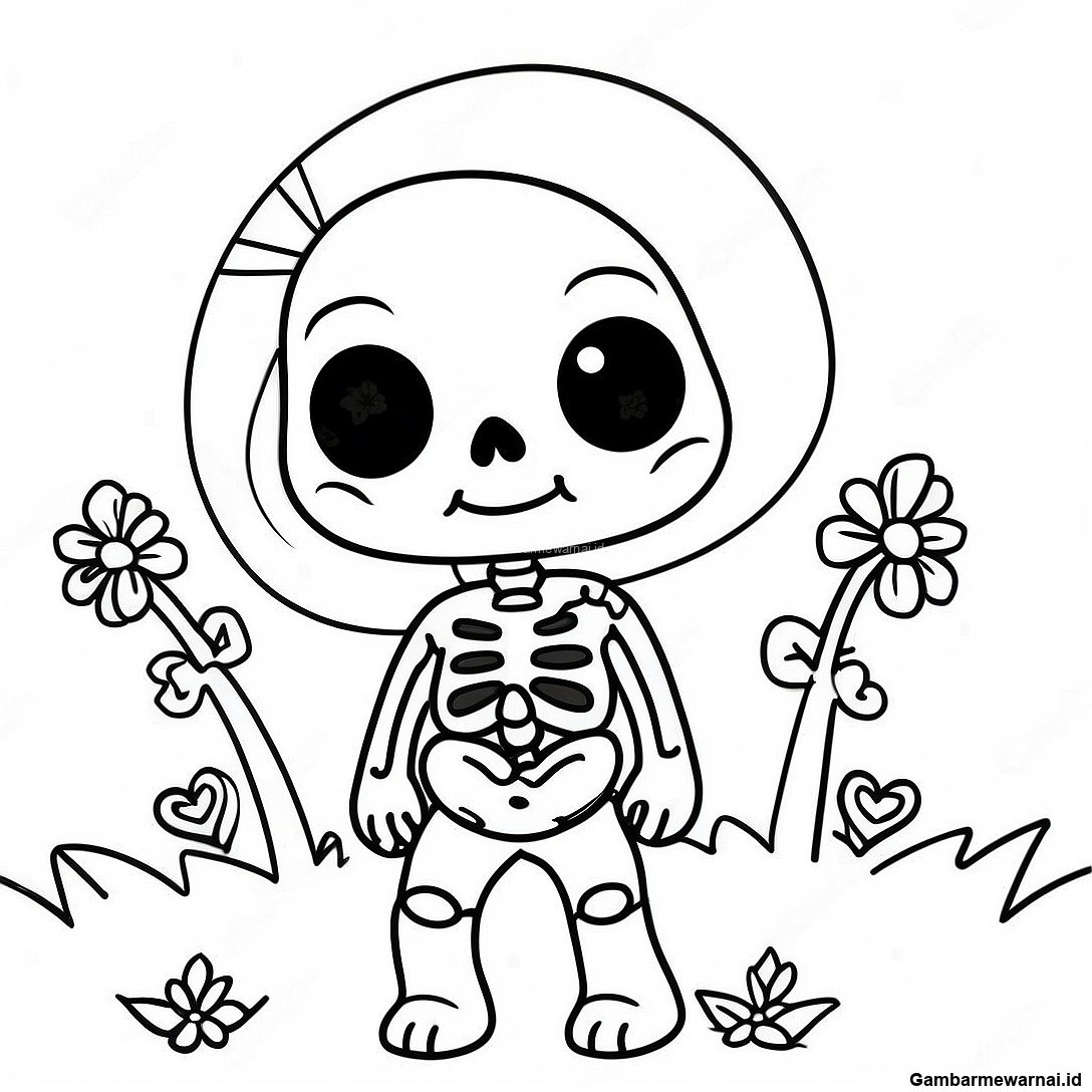 Halaman Mewarnai Kerangka Goth Pastel Yang Menggemaskan