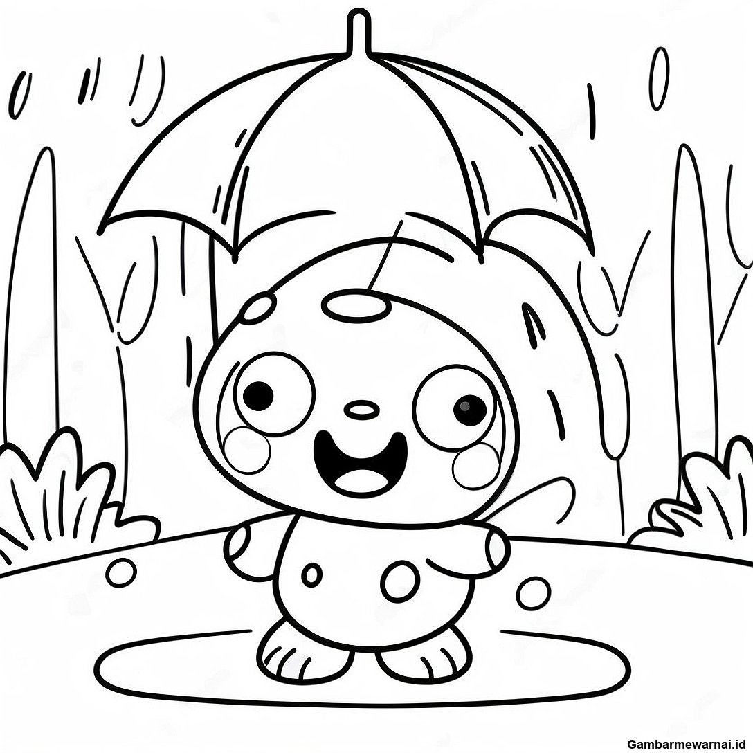 Halaman Mewarnai Keroppi Bermain Di Hujan