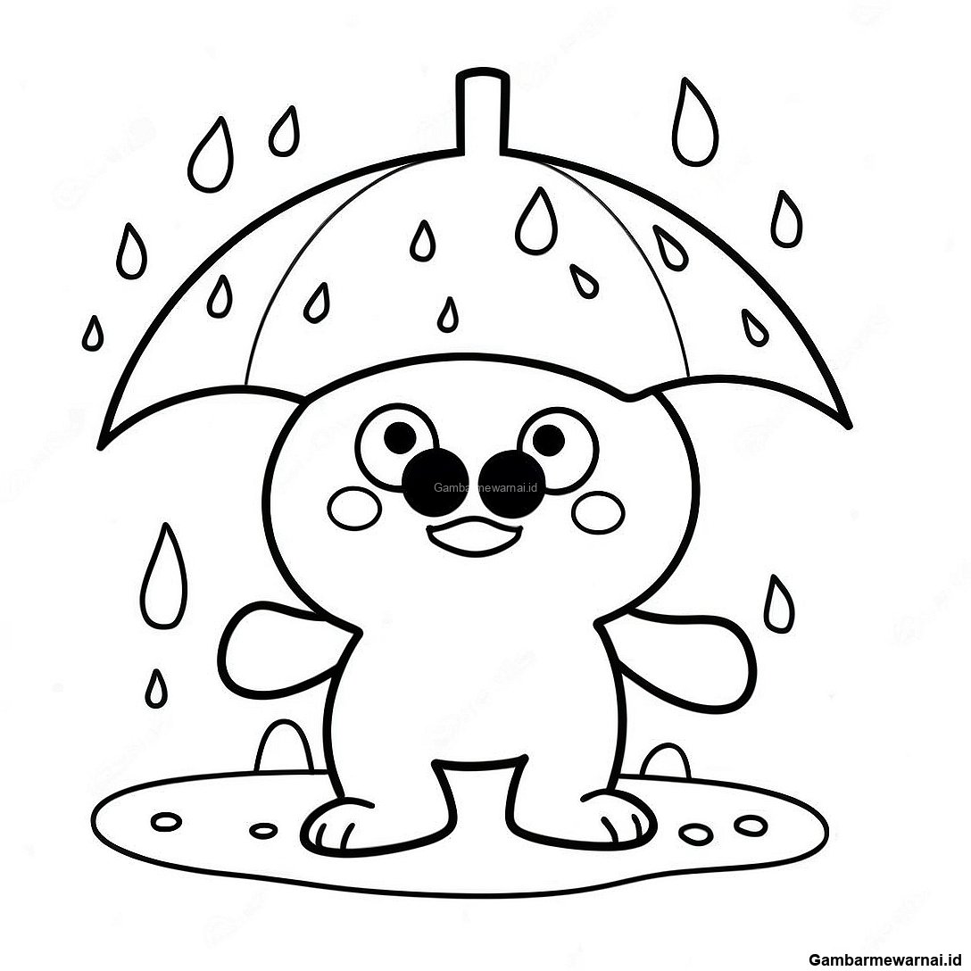 Halaman Mewarnai Keroppi Bermain Di Hujan
