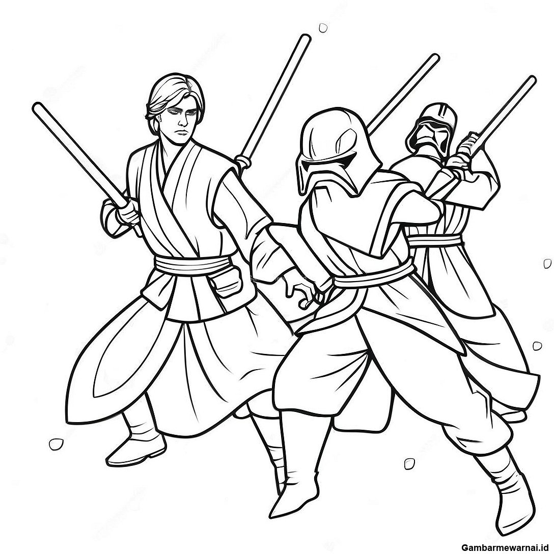 Halaman Mewarnai Kesatria Jedi Dalam Aksi