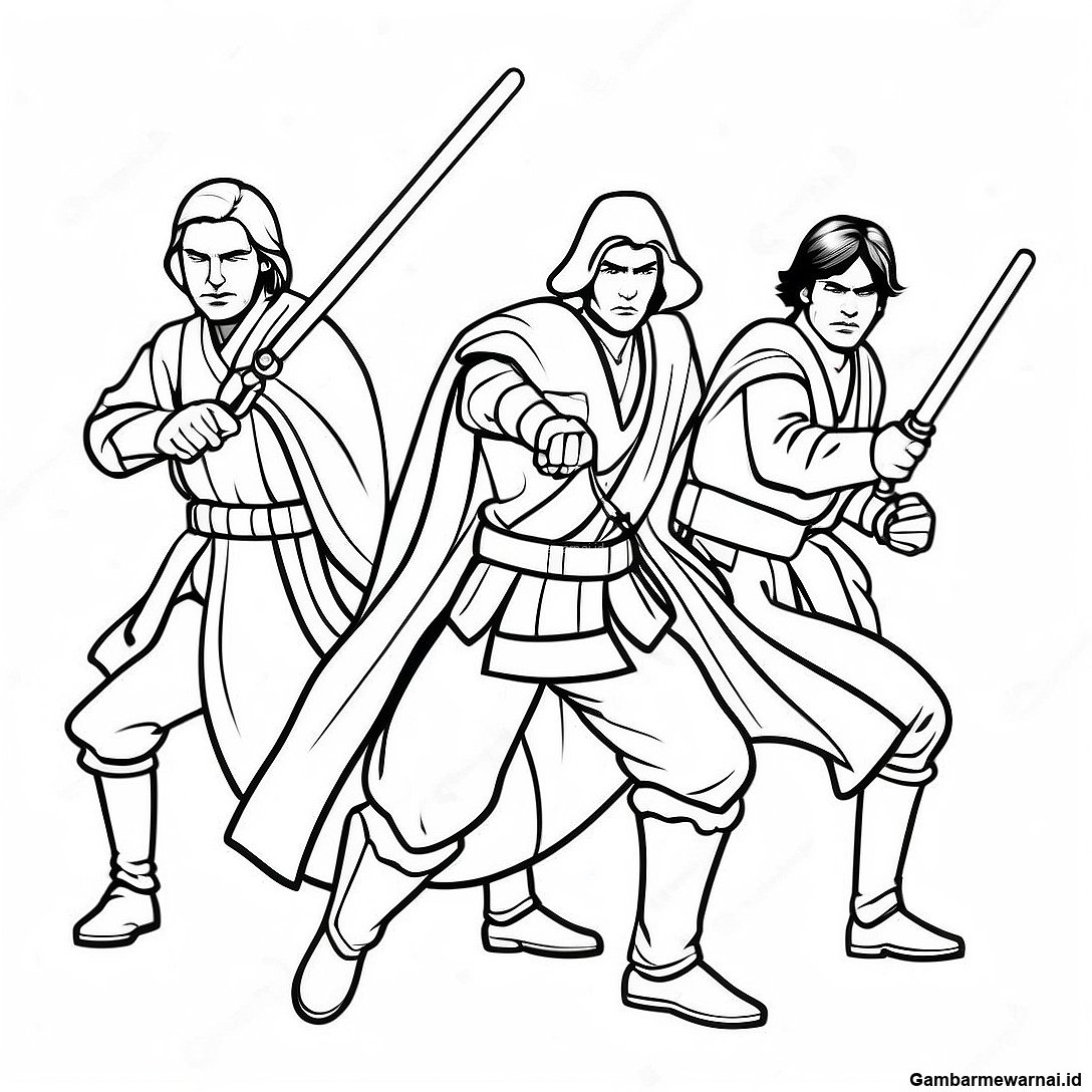 Halaman Mewarnai Kesatria Jedi Dalam Aksi